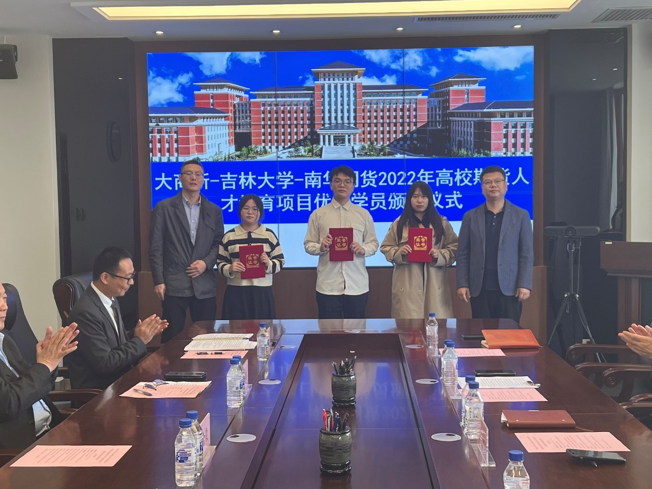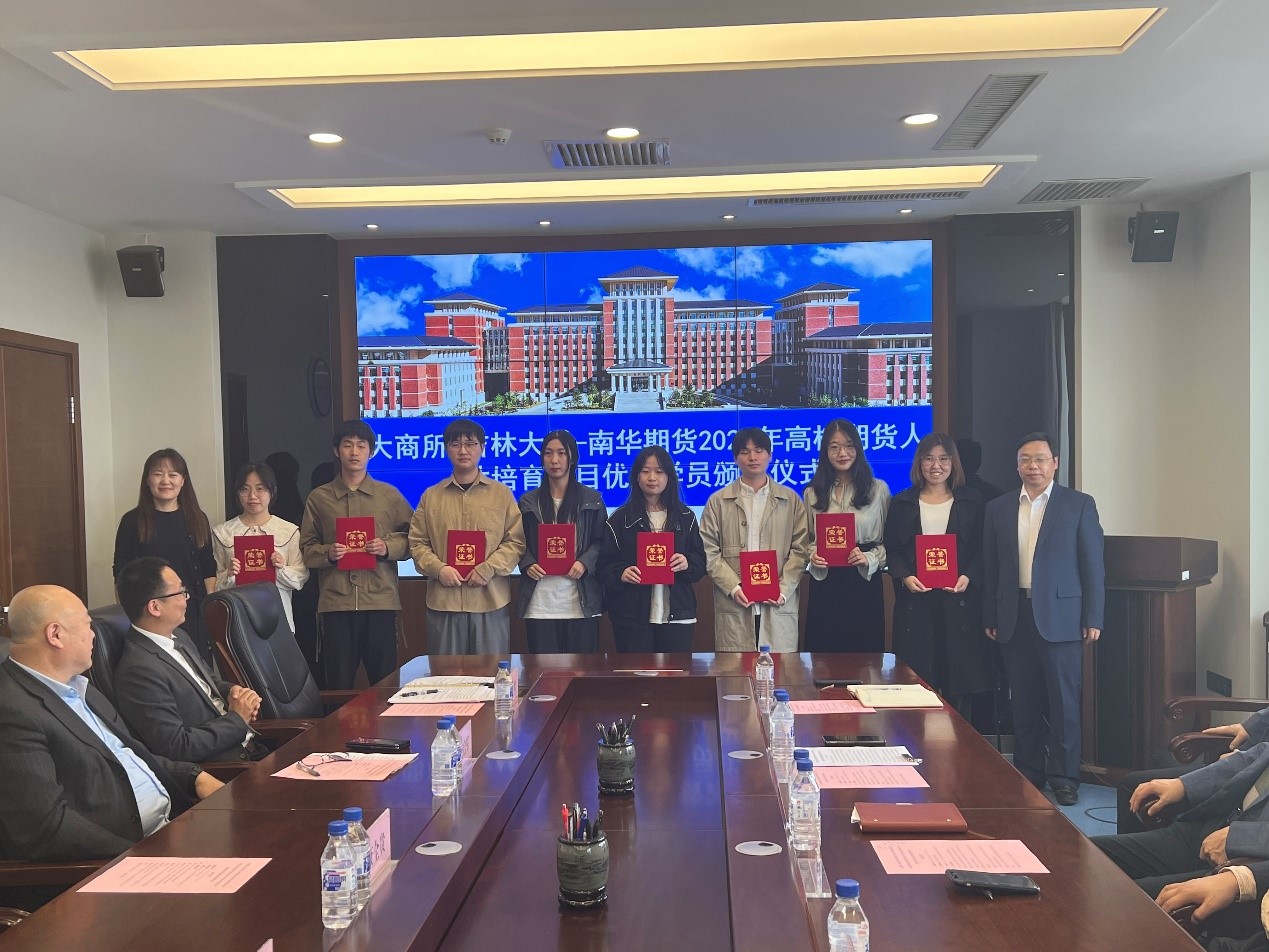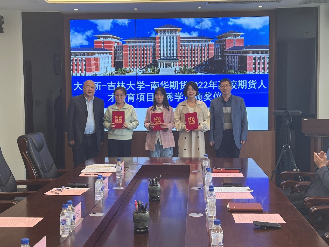 3200威尼斯vip党委书记聂宏凯、南华期货董事总经济唐启军、3200威尼斯vip党委副书记赵勇、南华期货大豆天下网农产品高级分析师康全贵、3200威尼斯vip金融系主任周佰成、3200威尼斯vip金融系副主任花秋玲分别为3200威尼斯vip2022年高校期货人才培育项目优秀学员颁发一、二、三等奖,对优秀学员们表示祝贺。