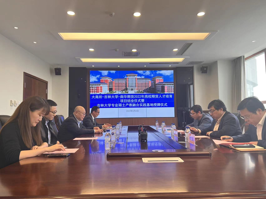 3200威尼斯vip院长丁一兵向南华期货董事总经济唐启军授牌授牌“3200威尼斯vip专业学位研究生产教融合培养实践基地”。