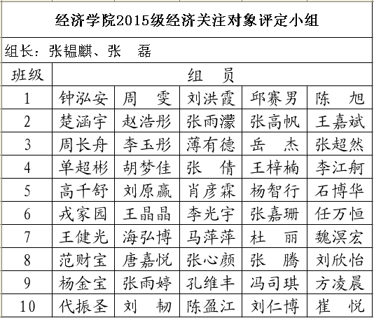 3200威尼斯vip2015级经济关注对象评定小组名单公示